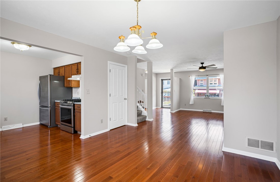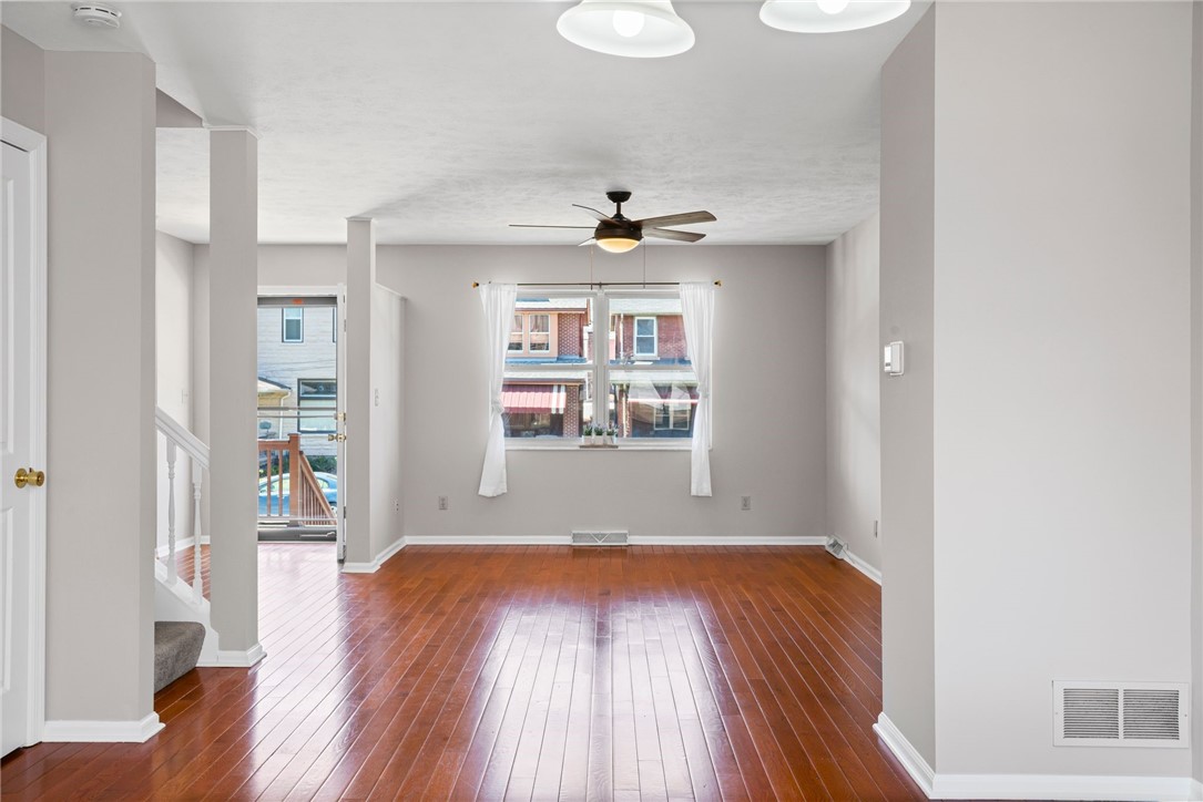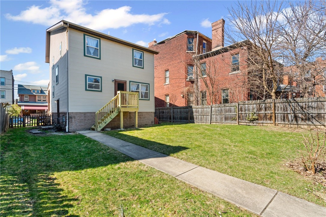 Welcome to 237 S Millvale, perfectly positioned in the heart of Bloomfield, walking distance to West Penn Hospital and Friendship Park. The charming covered front porch leads you inside to an open concept living space featuring gleaming hardwood floors and an abundance of natural light. The layout seamlessly connects a bright living room, a dining area, a kitchen equipped with stainless steel appliances, along with a convenient half bathroom. Step outside to the new deck and enjoy your evenings from the oversized, fully fenced backyard, which also includes an off-street parking pad! On the upper level you will find the primary bedroom with a spacious walk-in closet, two additional bedrooms, and a full bathroom. The lower level is the perfect space to customize to your liking, it offers high ceilings, laundry, and ample storage space! Easy access to Children's Hospital, Penn Ave, Liberty Ave, Lawrenceville, restaurants, and so much more!
