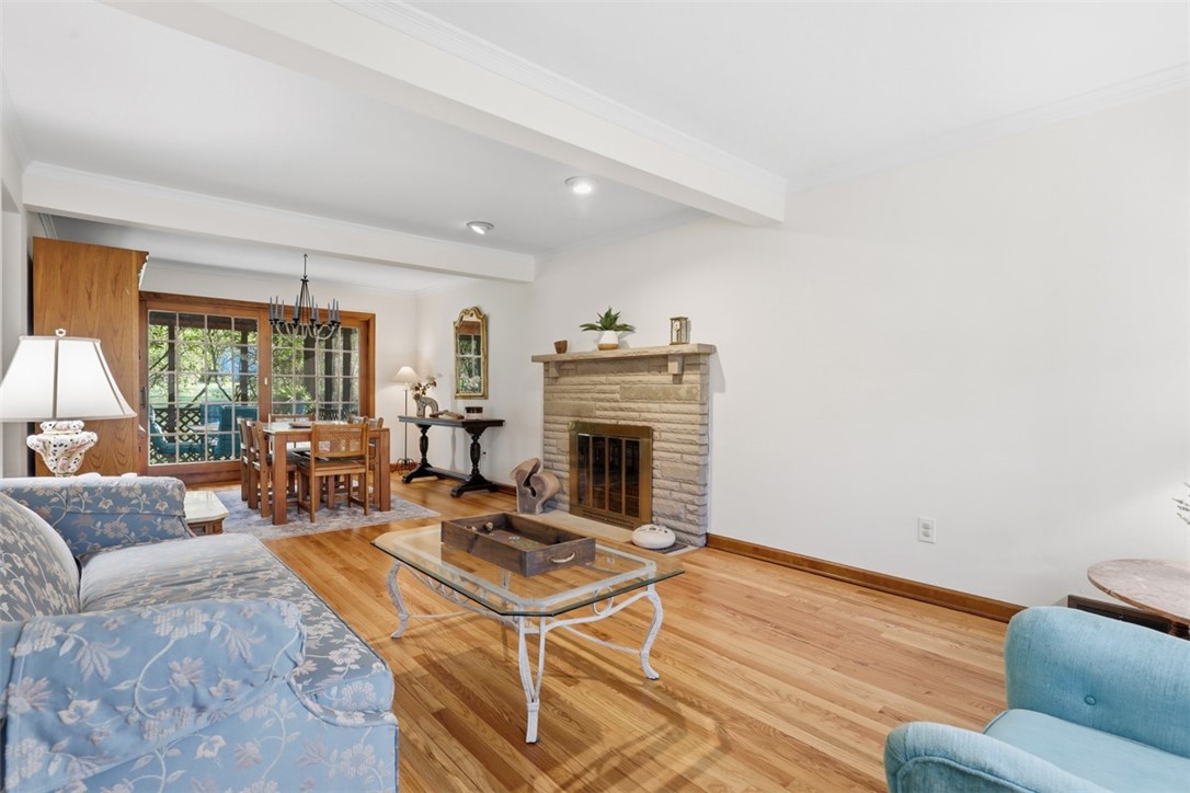 The main level offers a functional and inviting layout, including a bright living room/dining room combination highlighted by a lovely fireplace and gleaming hardwood floors. The eat-in kitchen comes complete with stainless steel appliances, 2 large pantries, an island, and an abundance of cabinet and counter space. The family room just off the kitchen adds more room to relax and gather.