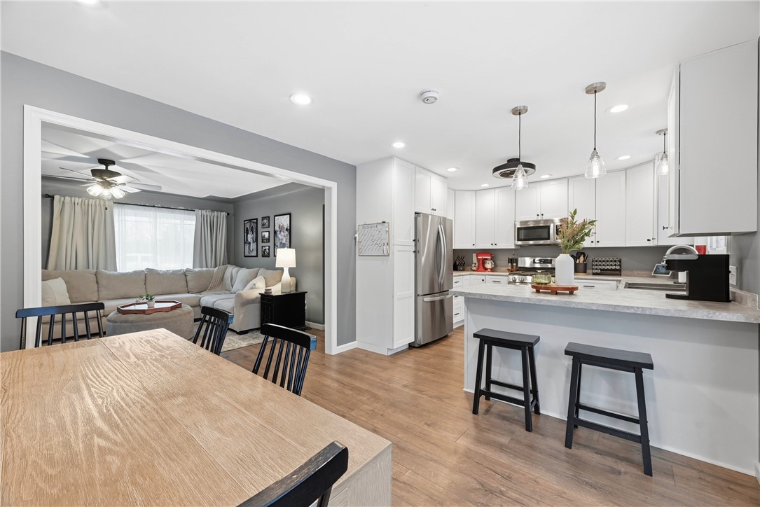Step into easy living in this well-cared-for ranch that's truly move-in ready. The open main level feels bright and welcoming, with a refreshed kitchen offering plenty of cabinet space that flows naturally into the dining and living areas--perfect for everyday living or having family and friends over! The main floor features a comfortable layout with nicely sized rooms and a full bathroom, while the finished lower level adds extra living space along with a second full bathroom, laundry, and storage--ideal for a home office, media room, or flexible bonus area.