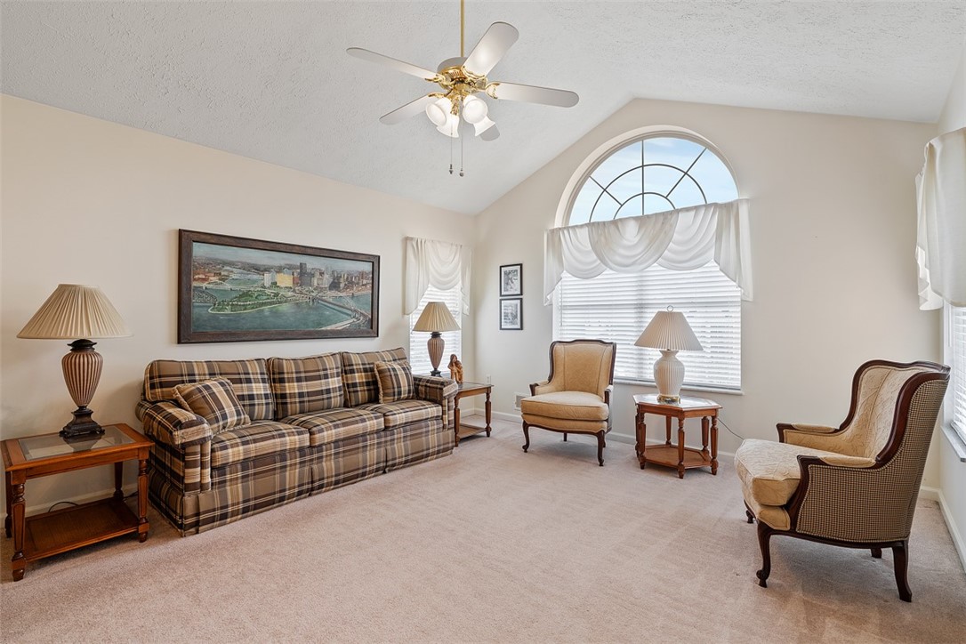 ENJOY EFFORTLESS ONE-LEVEL LIVING IN DESIRABLE POLO FIELDS! This exceptional home offers a spacious & functional layout designed for comfort & convenience. The main level features a primary suite with a private bath and walk in closet, a second bedroom, half bath & convenient laundry room are perfect for true one-level living! Soaring ceilings & a dramatic Palladian window welcome you into the open-concept living and dining areas, seamlessly connected to the kitchen-ideal for everyday living and entertaining. The neutral color palette and thoughtful design create a warm, inviting atmosphere throughout. Upstairs you'll find a versatile flex space with a full bath-ideal as a 3rd bedroom, guest suite, office, family Rm or gym! Additional features include a 2-car garage w/pull down attic access for extra storage. Polo Fields is a vibrant community offering a clubhouse & pool, located in Hampton Township & just minutes from RT. 8 shopping, local parks & Hartwood Acres events!